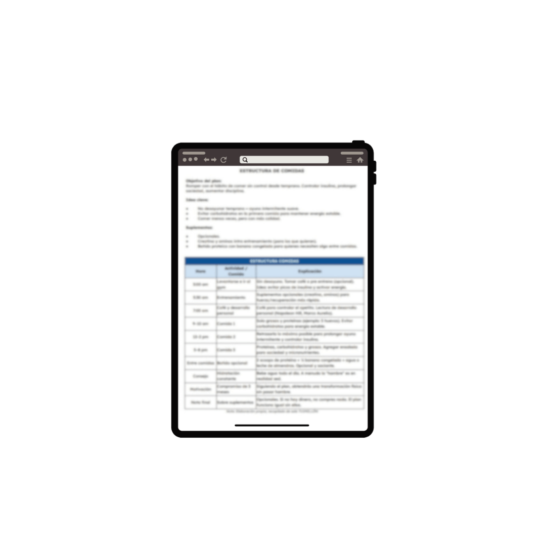 El método no es solo información, es acción para la transformación. La diferencia no es el conocimiento, es el tipo de hombre que naturalmente toma decisiones de líder. No es el "qué hacer", es el "quién soy". Es el hombre que domina sus macros, ejecuta burpees diarios y condiciona su mente para ganar.