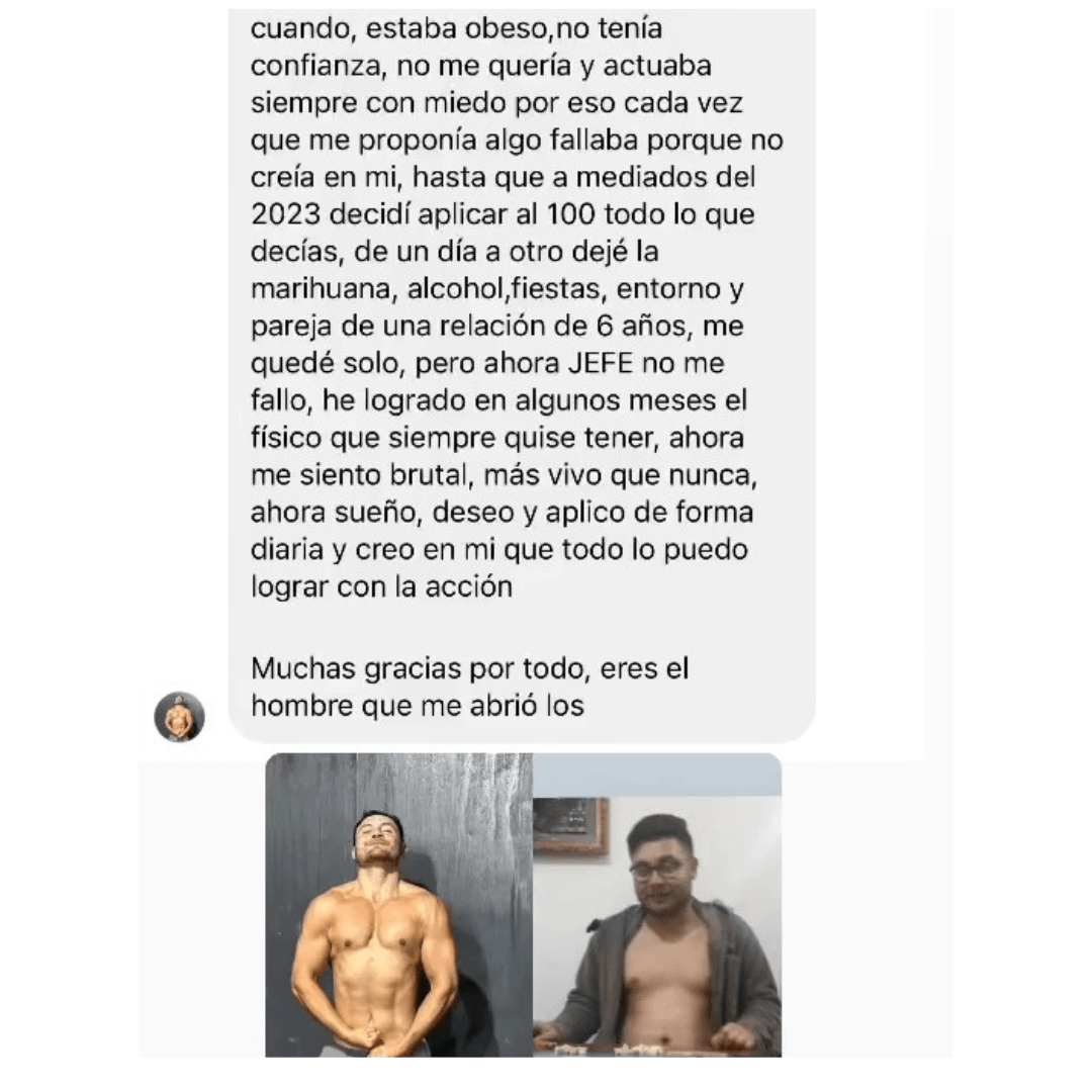 Primeros cambios en 72 HORAS: energía, enfoque y el respeto de haber tomado la decisión que el 99% no toma. En 30 días estarás irreconocible por tu cambio de identidad. ¿Qué tienes que perder excepto la vida que ya no quieres?